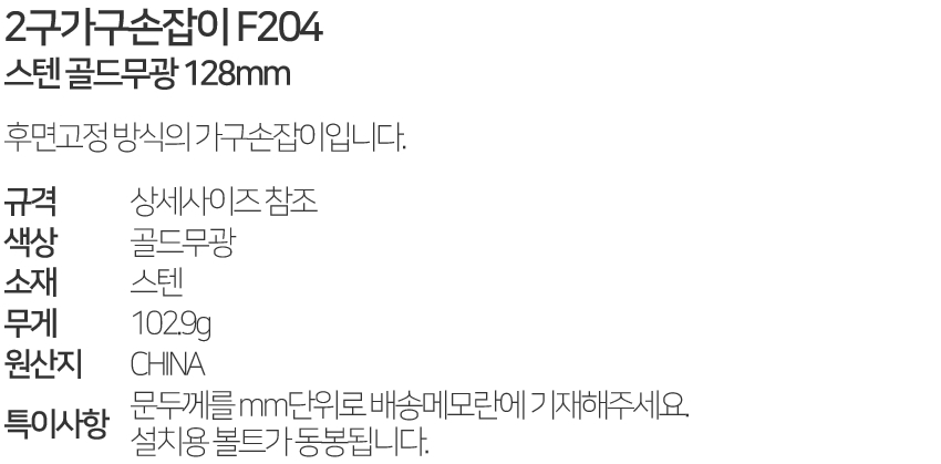 2±¸°¡±¸¼ÕÀâÀÌ F204 ½ºÅÙ °ñµå¹«±¤ 128mm