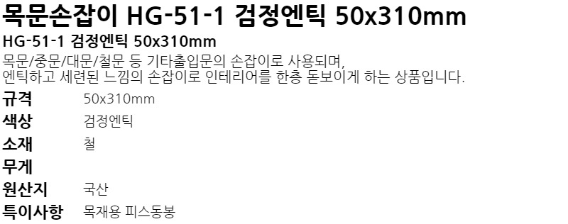¸ñ¹®¼ÕÀâÀÌ HG-51-1 °ËÁ¤¿£Æ½ 50x310mm