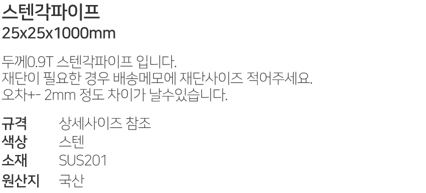 ½ºÅÙ°¢ÆÄÀÌÇÁ25x25x1000mm