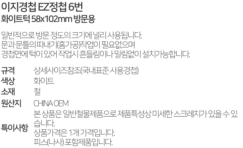 ÀÌÁö°æÃ¸ EZÁ¤Ã¸ 6¹ø ÈÀÌÆ®ÅÎ 58x102mm ¹æ¹®¿ë