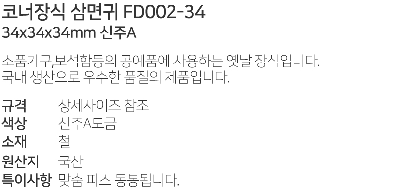 ÄÚ³ÊÀå½Ä »ï¸é±Í FD002-34 34x34x34mm ½ÅÁÖA