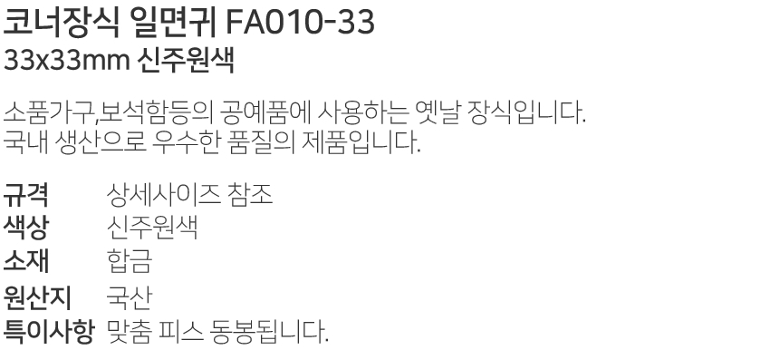 ÄÚ³ÊÀå½Ä Àϸé±Í FA010-33 33x33mm ½ÅÁÖ¿ø»ö