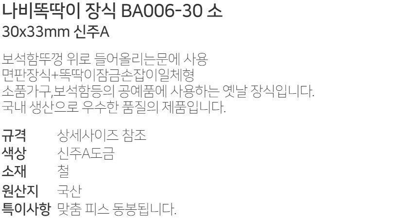 ¼ÕÀâÀÌ ³ªºñ¶ÈµüÀÌ Àå½Ä BA006-30 ¼Ò 30x33mm ½ÅÁÖA