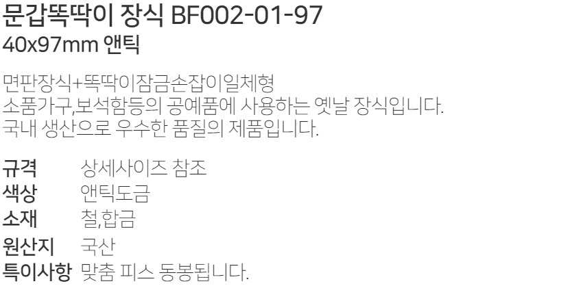 ¼ÕÀâÀÌ ¹®°©¶ÈµüÀÌ Àå½Ä BF002-01-97 40x97mm ¾ØÆ½