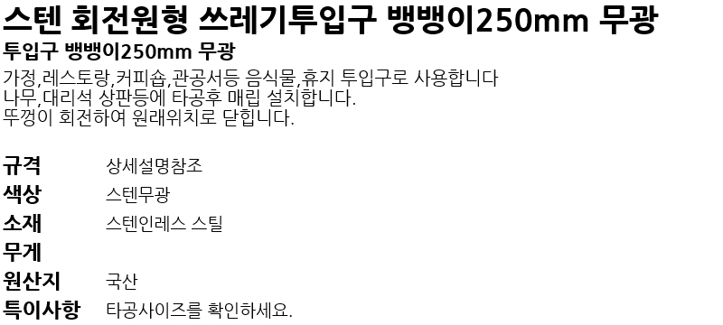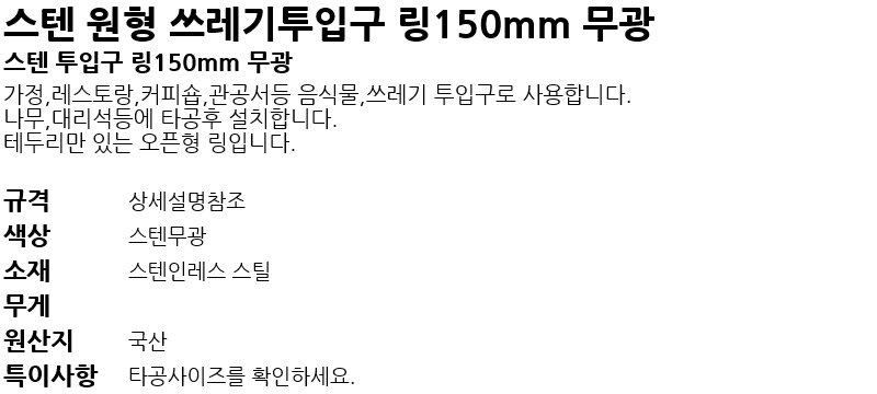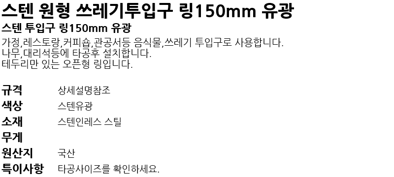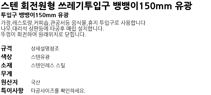 ½ºÅÙ ¿øÇü ¾²·¹±âÅõÀÔ±¸ ¸µ150mm °ËÁ¤