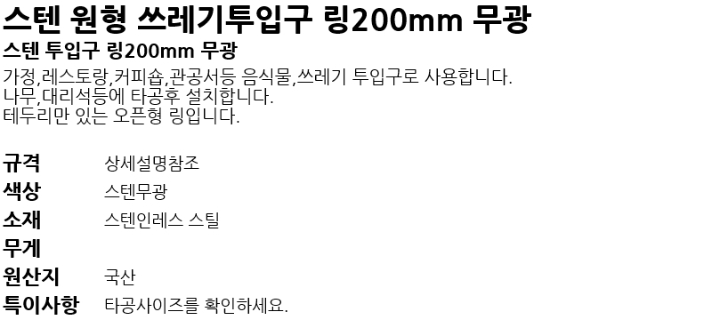 ½ºÅÙ ¿øÇü ¾²·¹±âÅõÀÔ±¸ ¸µ200mm °ËÁ¤