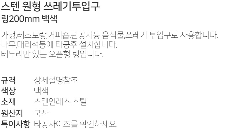 ½ºÅÙ ¿øÇü ¾²·¹±âÅõÀÔ±¸ ¸µ200mm ¹é»ö